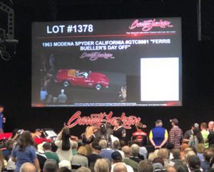 Finally, Saturday night’s experience at the auction took us back to the 80’s Anderson explains, “ I was able to watch as the iconic 1963 Modena Spyder California used as the main “hero car” in the 1980’s classic film “Ferris Bueller’s Day Off,” roll across the stage bringing in $396,000”